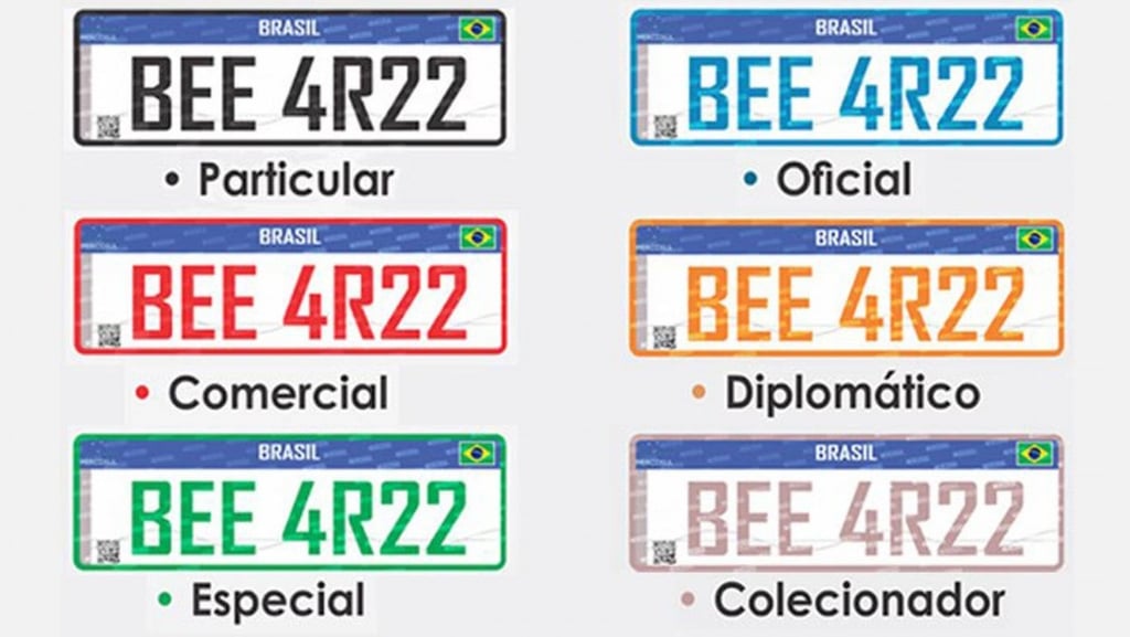 Placa: Branca com letras pretas (padrão antigo) ou branca com letras azuis (padrão Mercosul).