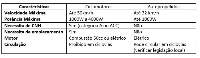Muitas pessoas confundem ciclomotores com veículos autopropelidos, mas eles possuem características e obrigações diferentes. Veja abaixo uma comparação clara: